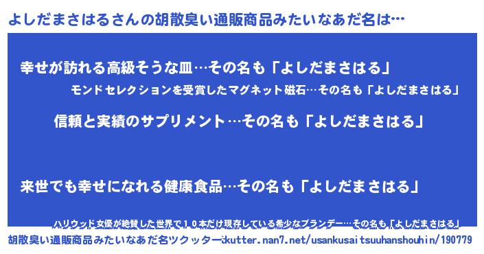 | 男性向けラノベタイトル風あだ名 | 『ダンジョンによしだまさはるを求めるのは間違っているだろうか』 |