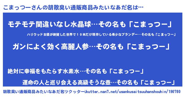 | 意味不明あだ名 | 『自称こまっつー』『ペロリンこまっつー』 |