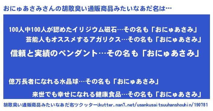 | 意味不明あだ名 | 『とにかく怪しいおにゅあさみ』 |