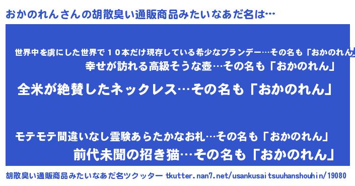 | 意味不明あだ名 | 『とにかく怪しいおかのれん』 |