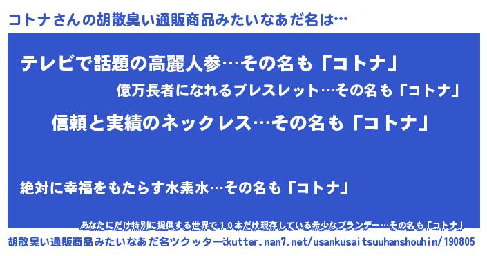 | 恥ずかしいあだ名 | 『コトリンリン』『コトナデラックス』 |