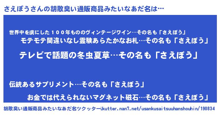 | 意味不明あだ名 | 『なめこ科さえぼう属』『自称さえぼう』 |