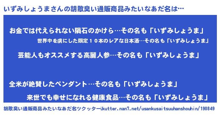 | 恥ずかしいあだ名 | 『イズミショウマデラックス』『いずちん』 |