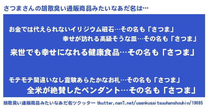 | 意味不明あだ名 | 『永久保存さつま』『なめこ科さつま属』 |