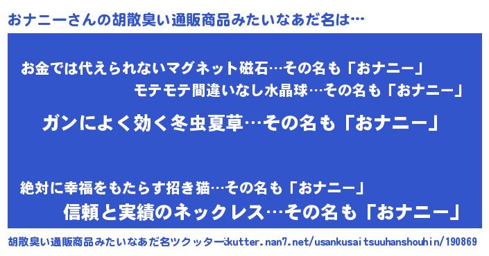 | 意味不明あだ名 | 『自称おナニー』『もやし科おナニー属』 |