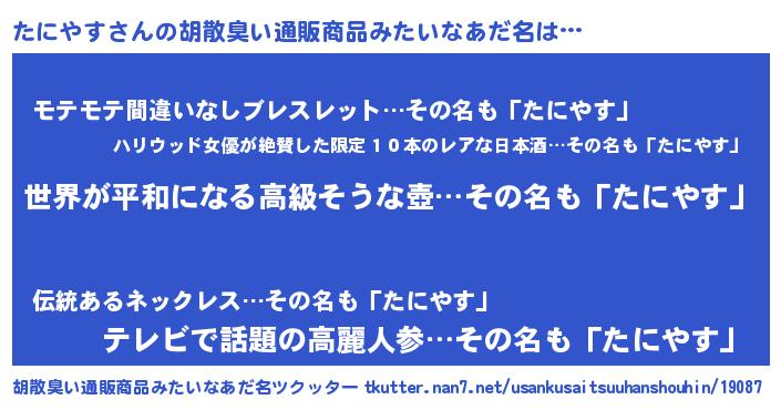 | 肩書あだ名 | 『たにやす艦長』『たにやすディレクター』 |