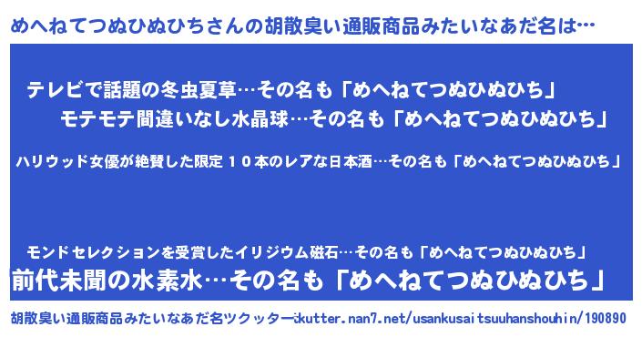 | ヘコむあだ名 | 『めへねてつぬひぬひち(爆)』『めへっちょ』 |