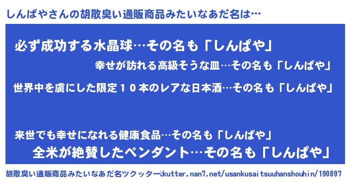 | 意味不明あだ名 | 『住所不定無職しんぱや(40歳)』 |