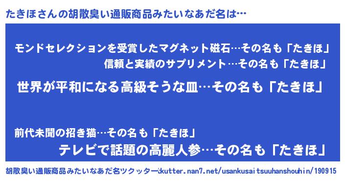 | 欧米人風あだ名 | 『アンジェラ・たきほ』『ダニエルたきほ』 |