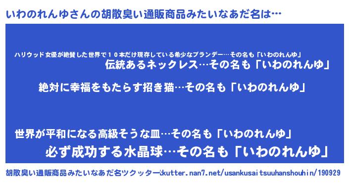 | 意味不明あだ名 | 『永久保存いわのれんゆ』 |