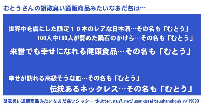 | ヘコむあだ名 | 『むとう(笑)』『むと太郎』『つくし』 |