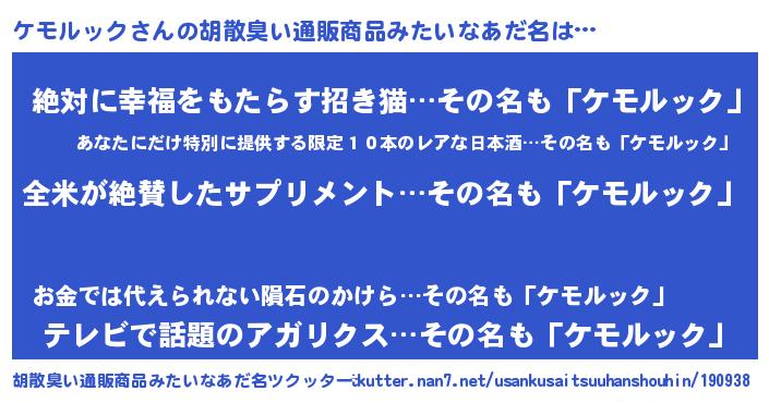 | 意味不明あだ名 | 『とにかく怪しいケモルック』 |
