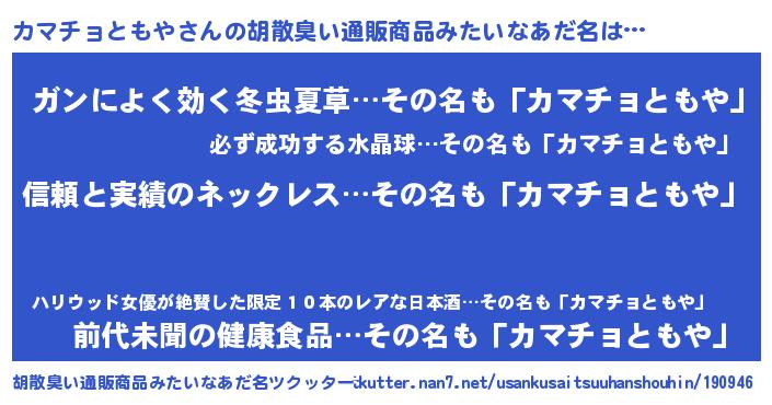| 意味不明あだ名 | 『とにかく怪しいカマチョともや』 |