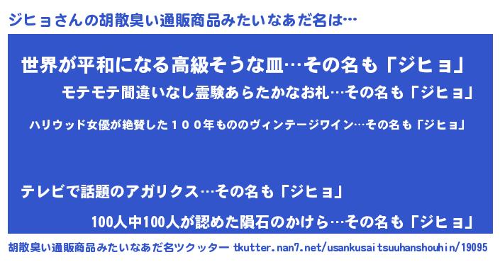 | 欧米人風あだ名 | 『ダレノガレジヒョ』『ジヒョクリステル』 |