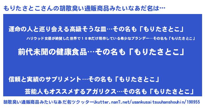 | 意味不明あだ名 | 『永久保存もりたさとこ』 |