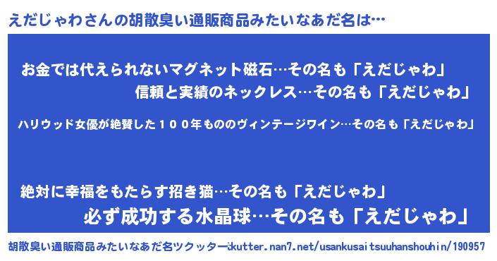 | 料理風あだ名 | 『えだじゃわのカルパッチョ風』 |