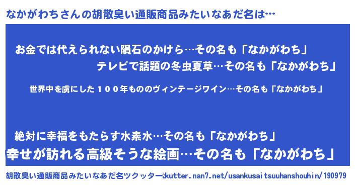 | ヘコむあだ名 | 『豆乳』『なかがわち(笑)』『なかお』 |