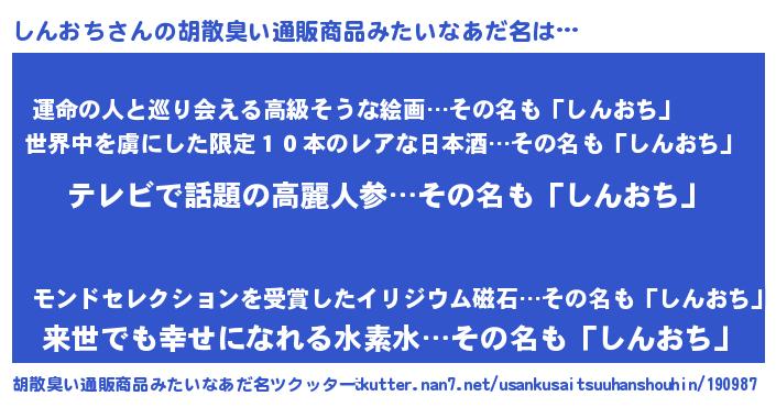 | 男性向けラノベタイトル風あだ名 | 『転生したらしんおちだった件』 |
