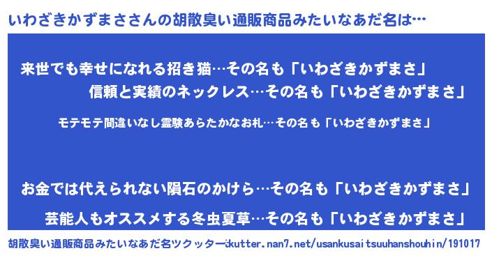 | 肩書あだ名 | 『いわざきかずまさ御曹司』 |