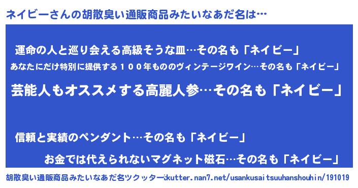 | 意味不明あだ名 | 『自称ネイビー』『ネイビーフォーエバー』 |