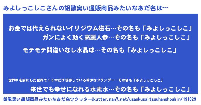 | ヒーロー風カッコイイあだ名 | 『スーパーミヨシッコシコ』 |