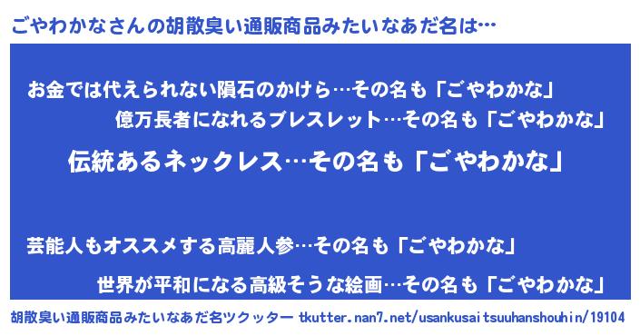 | 意味不明あだ名 | 『とにかく怪しいごやわかな』 |