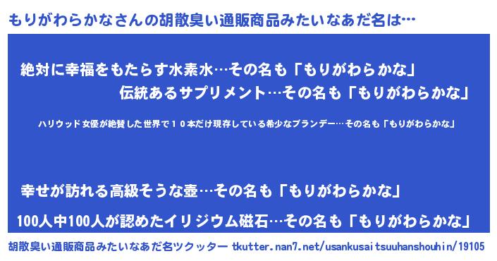 | 欧米人風あだ名 | 『ダレノガレもりがわらかな』 |