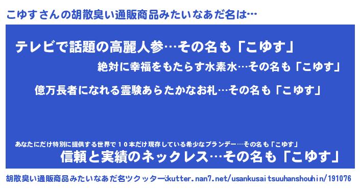 | 意味不明あだ名 | 『ペロリンこゆす』『自称こゆす』 |