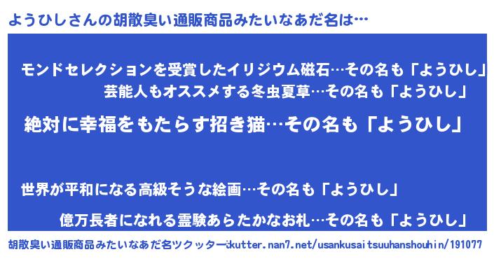 ようひしさんの胡散臭い通販商品みたいなあだ名をツクッター!