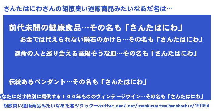 | 欧米人風あだ名 | 『さんたはにわクリステル』 |