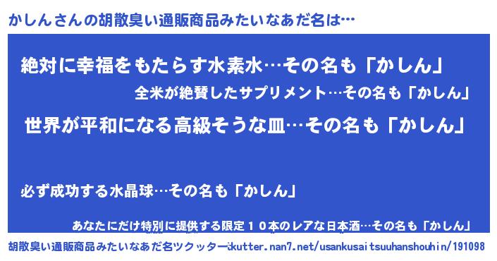 | 肩書あだ名 | 『かしん国家主席』『かしん大将』 |