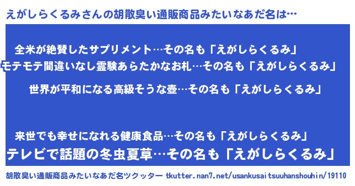 えがしらくるみさんの胡散臭い通販商品みたいなあだ名をツクッター!