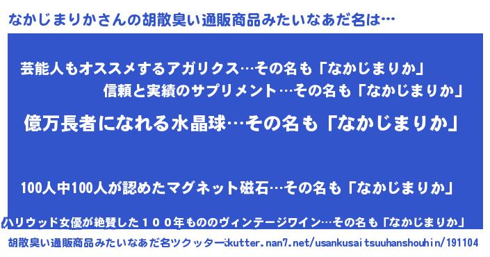 | 恥ずかしいあだ名 | 『プリティーなかじまりか』『なかっちょ』 |