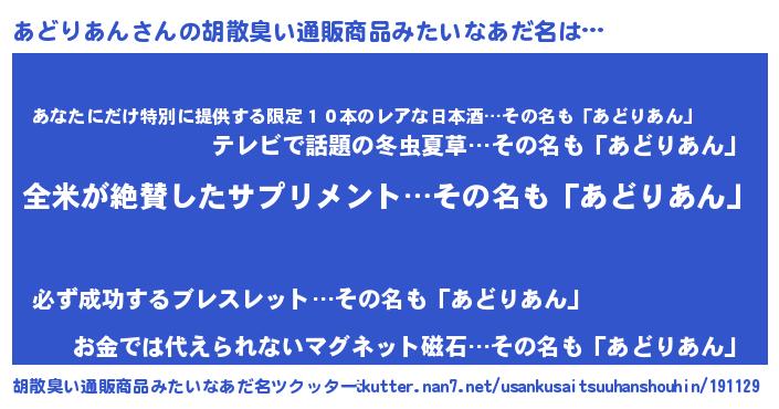 | ピコ太郎風あだ名 | 『アド三郎』『アア太郎』『アコ史郎』 |
