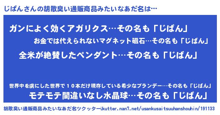 | 欧米人風あだ名 | 『ウサインじばん』『トリンドルじばん』 |