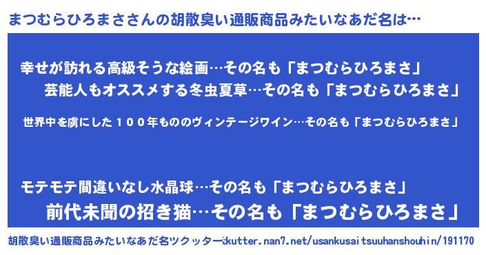 | 欧米人風あだ名 | 『ダレノガレまつむらひろまさ』 |