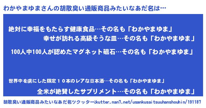 | ヒーロー風カッコイイあだ名 | 『正義の使者わかやまゆま』 |