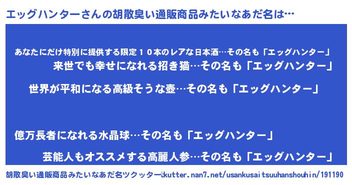 | ファンタジー風あだ名 | 『エターナルエッグハンターー』 |