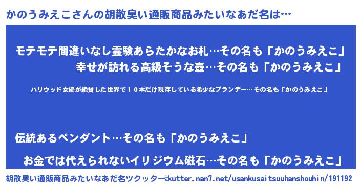 | 意味不明あだ名 | 『住所不定無職かのうみえこ(79歳)』 |