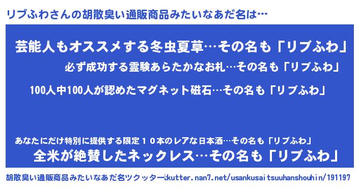 | 欧米人風あだ名 | 『アンジェラ・リブふわ』 |