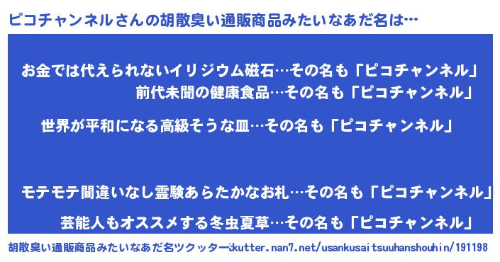 | 伝説のあだ名 | 『最古の陰陽師ピコチャンネル』 |