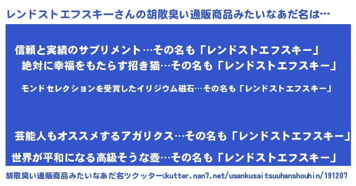 | 伝説のあだ名 | 『救世主となる占い師レンドストエフスキー』 |