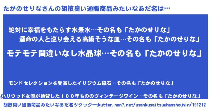 | 意味不明あだ名 | 『ペロリンたかのせりな』 |