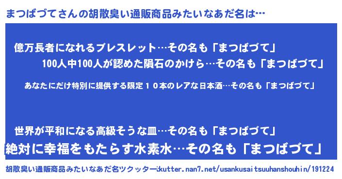 | 意味不明あだ名 | 『住所不定無職まつばづて(47歳)』 |