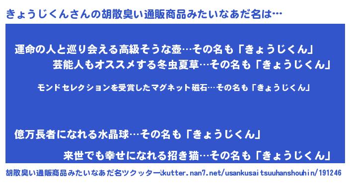 | 意味不明あだ名 | 『眠気覚ましガムきょうじくん味』 |