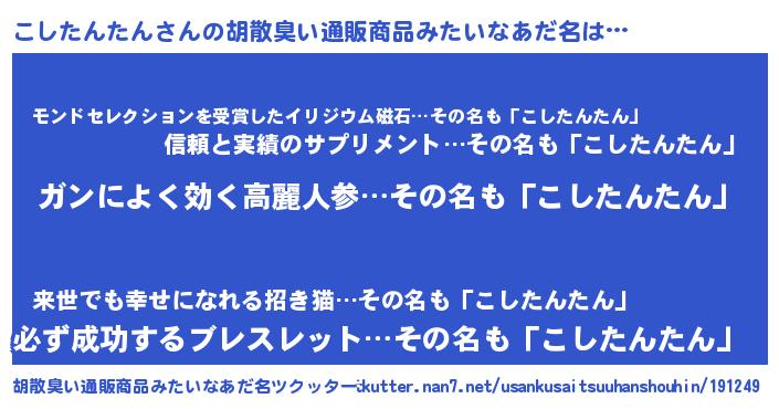 | 女子向けラノベタイトル風あだ名 | 『こしたんたんなんてお断りですっ。』 |