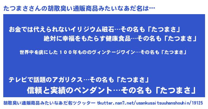 | 意味不明あだ名 | 『住所不定無職たつまさ(3歳)』 |