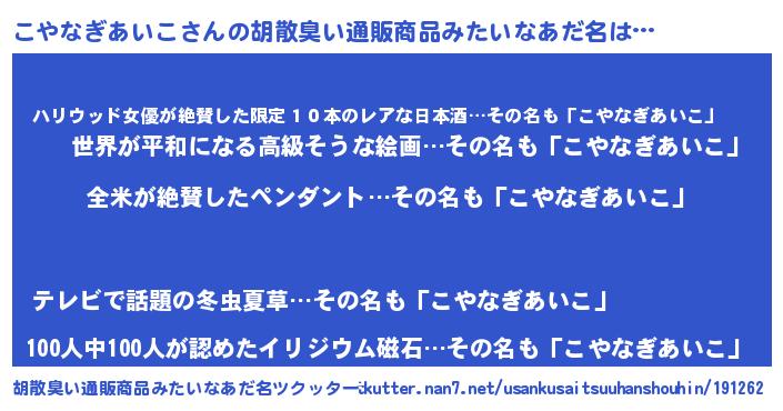 | 意味不明あだ名 | 『とにかく怪しいこやなぎあいこ』 |