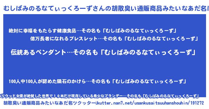 | 伝説のあだ名 | 『解き放たれた遊び人むしばみのるなてぃっくろーず』 |