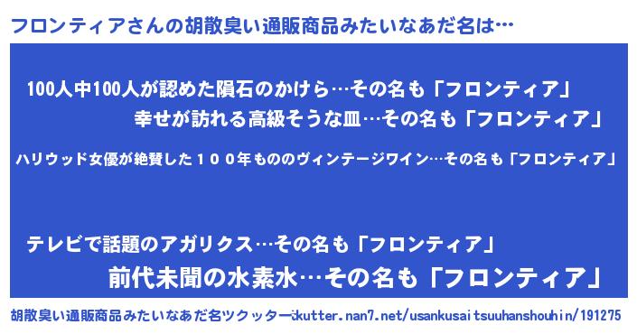 | 男性向けラノベタイトル風あだ名 | 『フロンティアスレイヤー』 |